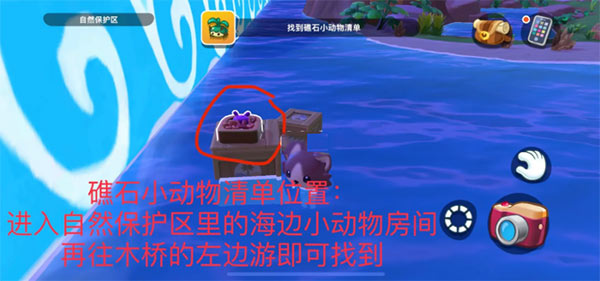 进入自然保护区里的海边小动物房间,进水往最左边游、