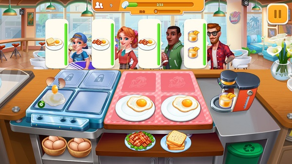- 打通关卡来获取烹饪经验值并升级餐厅!