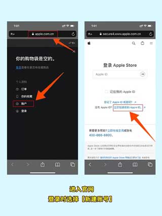 1、第一步就是进入官网,并且登录时选择【新建账号】。