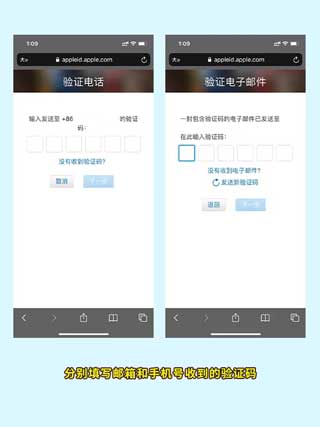 3、分别填写邮箱和手机号收到的验证码。