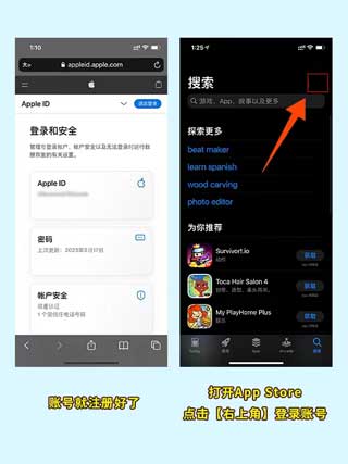 4、账号就注册哈喽,然后打开app store,点击右上角的登录账号即可体验游戏。