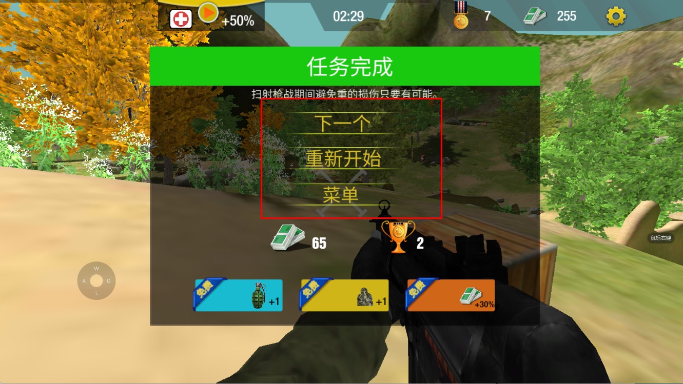 4、成功完成任务后,可选择“下一个”开启新任务、“重新开始”再次挑战当前任务或进入“菜单”界面进行其他操作。