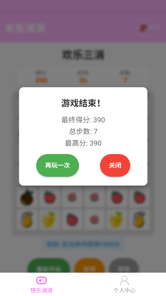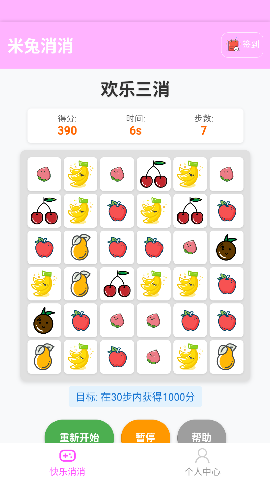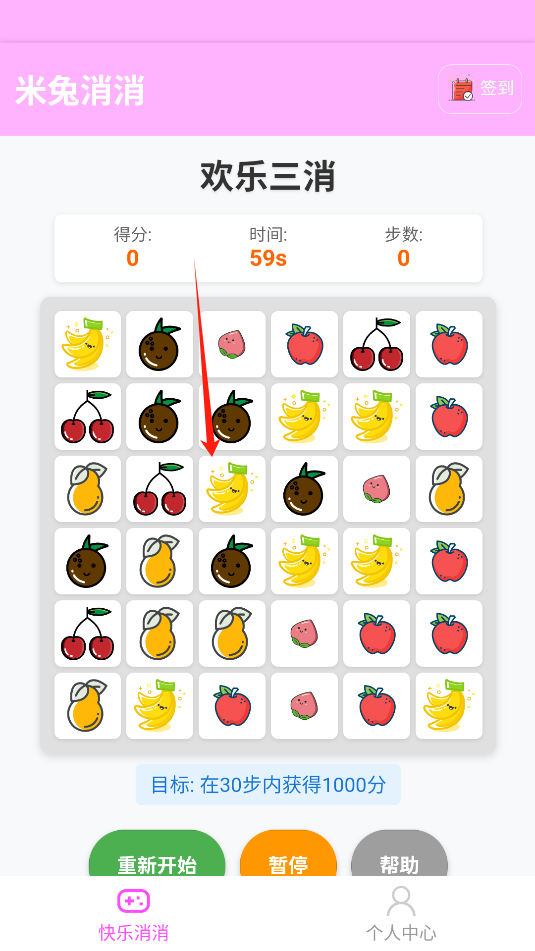 3、游戏界面简单,需在30步数内获得1000分数即可通关。