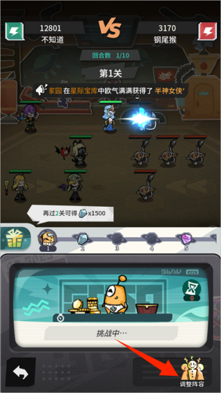 3、玩家还可根据敌人属性,点击【调整阵容】