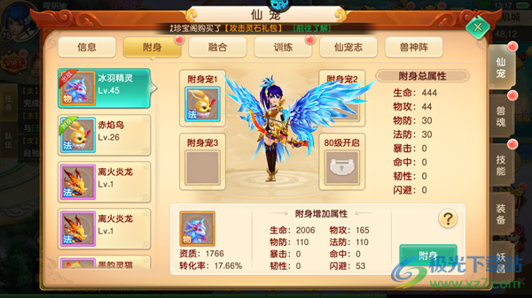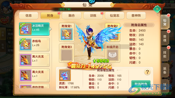 4、选择一直合适的仙宠后点击右下角的“附身”。