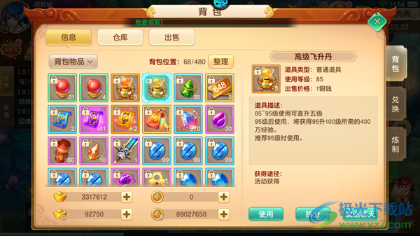 1、高级飞升丹:85-95级使用可直升五级95级后使用,将获得95升100级所需的400万经验,推荐95级时使用。