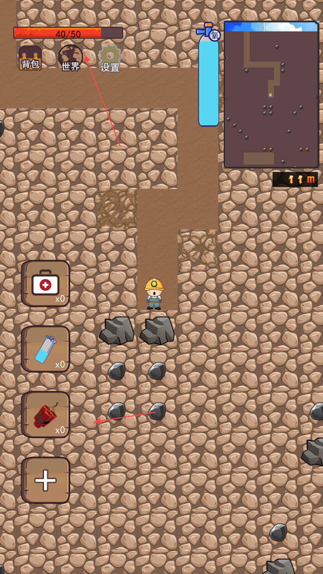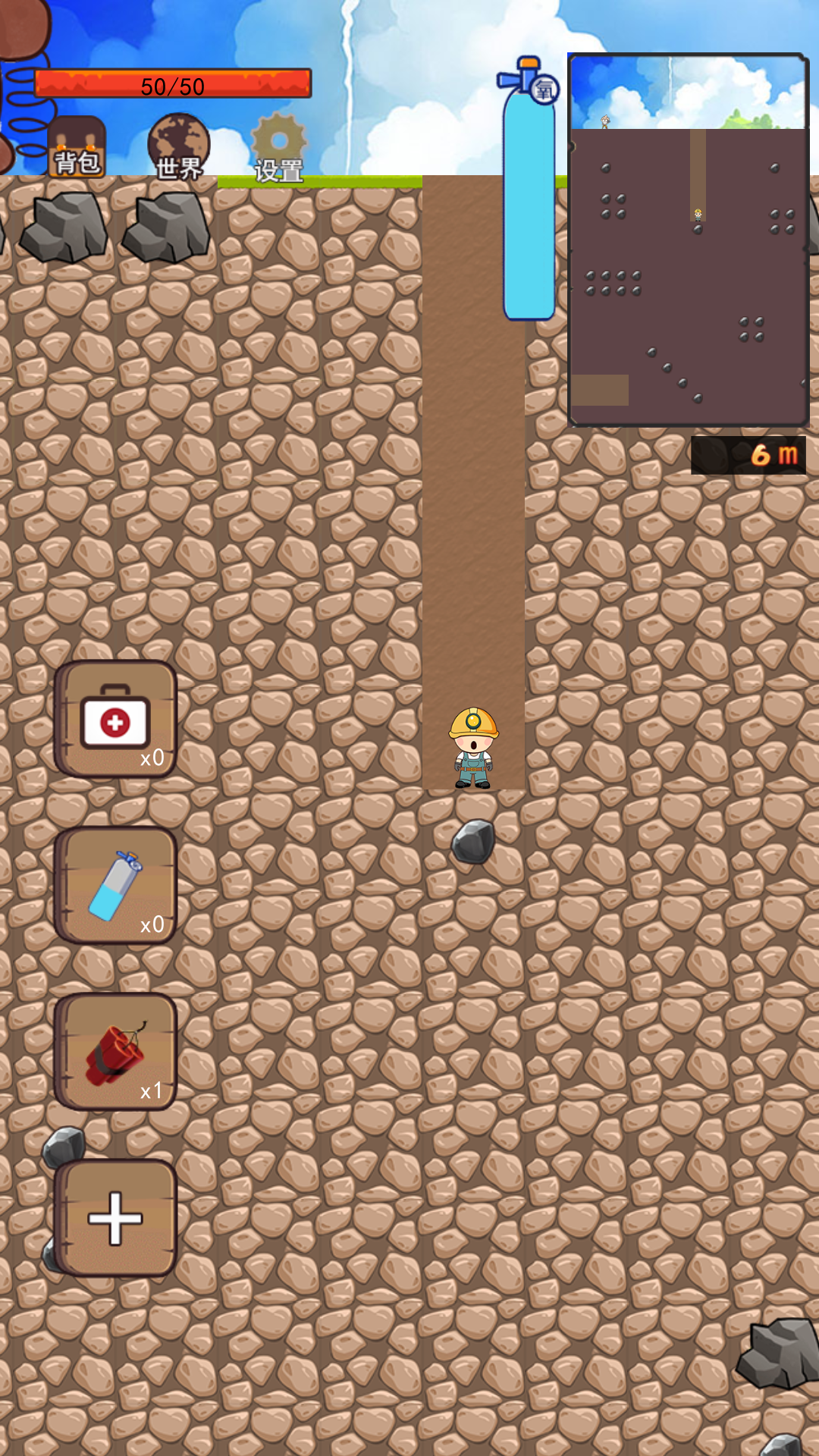 2、我们需要操纵主角不断往下挖,但同时也要注意氧气值。