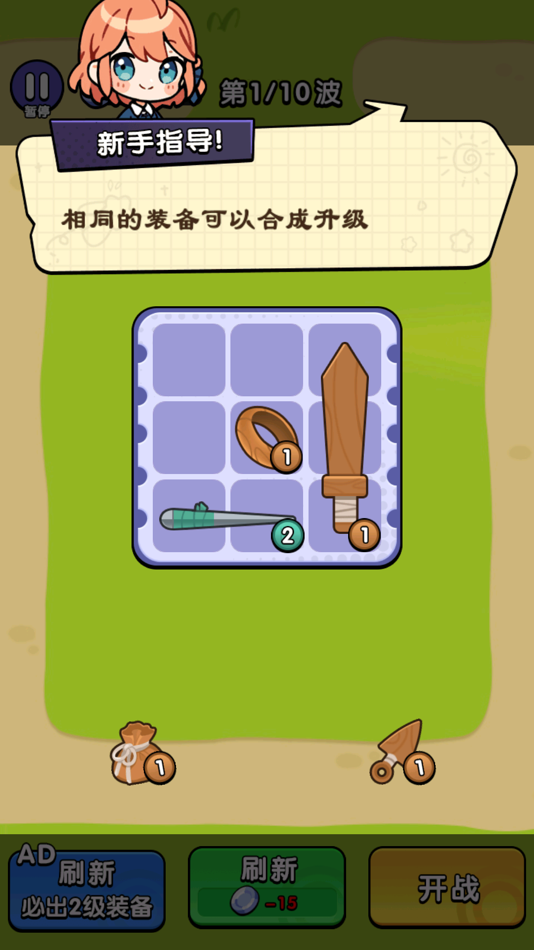 3、我们跟随引导合成相同的武器,以击败敌人。