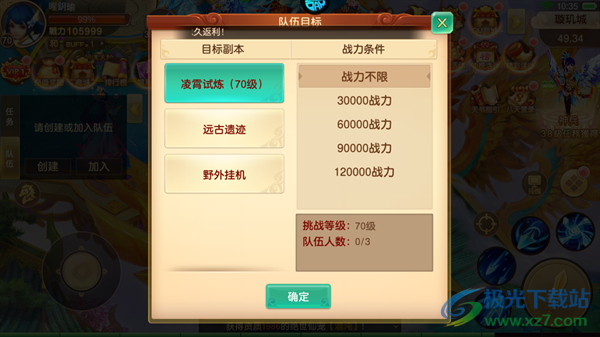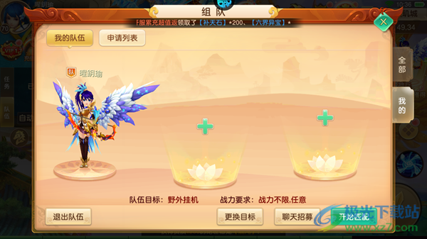 3、自定义设置队伍的目标,包括目标副本,加入的战力条件等。