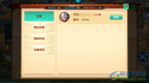 5、可以邀请附近好友或仙盟盟友等,点击邀请等待对方同意即可。