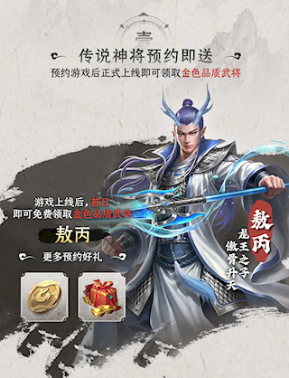 预约游戏后下载并进入游戏,完成创角后即可获得强力开荒天级武将三太子-敖丙!