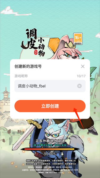 2、创建游戏账号,点击【立即创建】