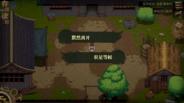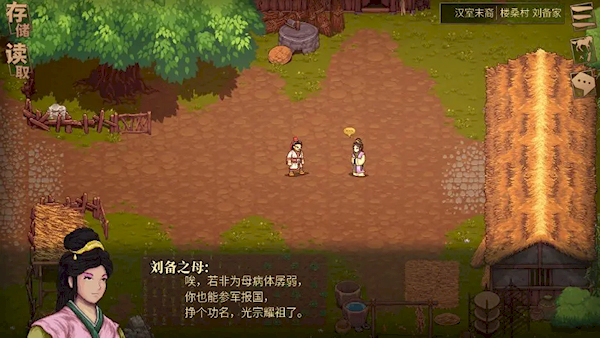 3、然后又来到了卢植的小课堂剧情,之后刘备偶遇出征军队驻足观看,然后回家和刘母言说此事。自古忠孝不能两全,身体欠安的刘母看出刘备的胸怀大志之心让刘备外出历练以大业为重!