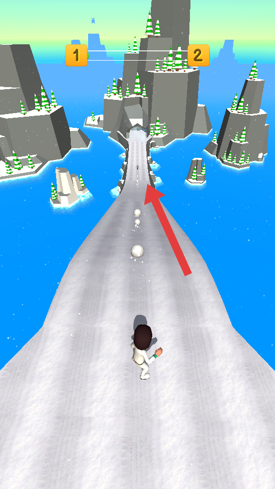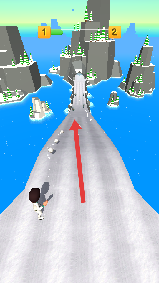 2、跑酷过程中遇到可互动的雪球时,如短暂加速,借助雪球的元素来提升跑酷的效率,为后续推进来节省时间。