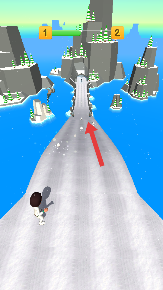 3、推进至关卡2后,雪道可能出现轻微起伏,及时调整角色移动方向,提前查看敌人方向,完成当前关卡目标。