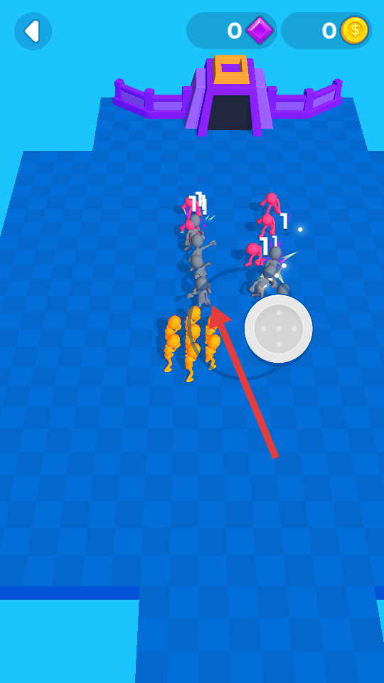 2、遇到其他颜色的小人队伍时,主动发起战斗,利用优势击败对手,将其转化为己方队友,进一步壮大队伍。