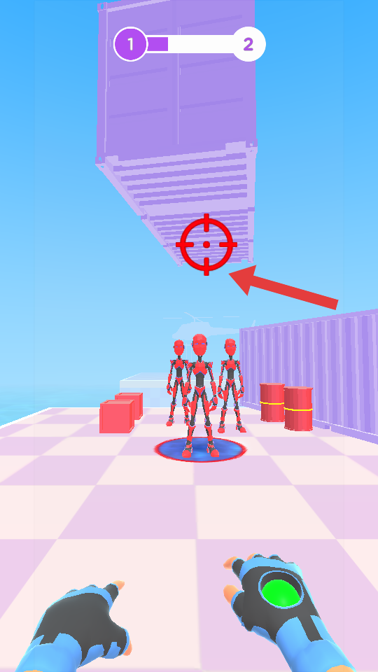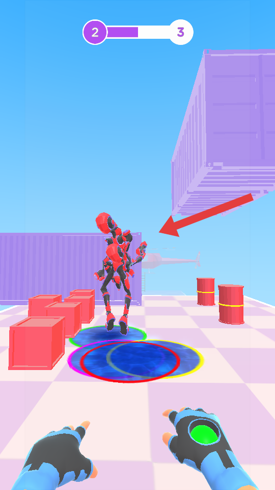 2、战斗时利用地面出现的彩色圆环区域,借助其触发的效果,更高效击飞机器人,从而加快的升级节奏。