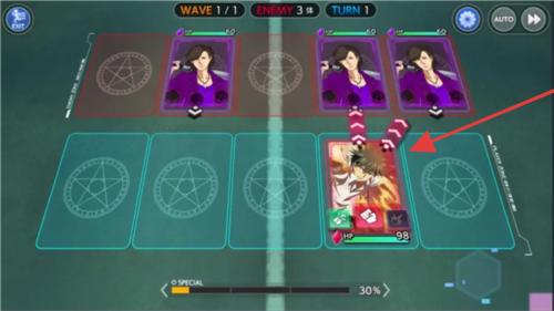 3、留意【WAVE】波数、【TURN】回合数,优先集火高威胁敌人,积累能量释放“SPECIAL”,逐步清空敌方卡牌,赢取胜利。