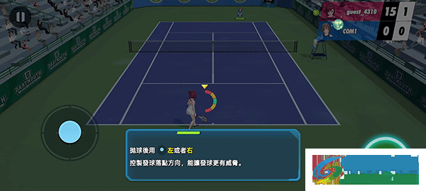 3、同时玩家还能够同左边方向的摇杆控制发球的方向以及落地等。
