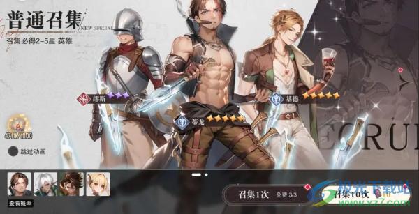 每天有三次免费召集英雄的机会,每次召集必得2-5星的英雄,使用普通召集令进行召集。