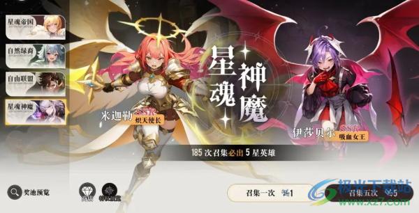 消耗祈愿星石可进行对应阵营的祈愿召集,每次召集有概率获得4星或5星品质英雄或指定阵营英雄碎片。