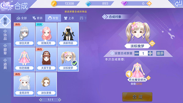 工坊服饰合成中,这里的也有一些发型值得拿下,比如银白天使、淡棕晚梦两个都非常好看,与其他服饰也非常的百搭。服饰合成需要对应服饰碎片,获得方式上丝毫不弱与服饰打造,想收集的玩家需要花费一定功夫!