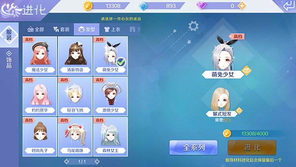 最后,工坊的服饰进化中也有很多发型,这里需要玩家收集3个相同的发型,然后就可以进化成带有光效的高档发型。这里萌兔少女、森林女王非常推荐收集,点击发型可以看到具体获得途径,收集起来一样具有一定的难度。