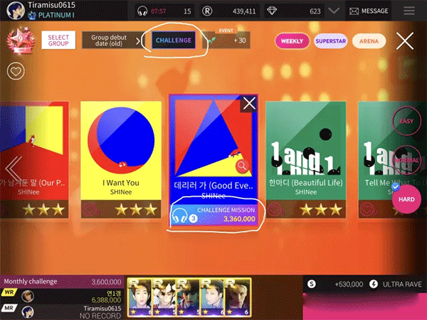 打歌其实没什么好说的,每首歌有easy, normal, hard三个模式,选择你想玩的歌和你能承受的难度就行。