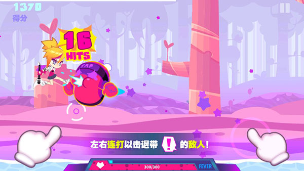 目前游戏已经包含40首基础歌曲,以及13种扩充曲包,每个曲包都包含6首歌曲,携手凛、布若、玛莉嘉三位主角,12款独具特色的不同职业小姐姐,伴随着音乐的节奏,拳打BOSS,触发COMBO,顺应符音开始全新的冒险旅程。