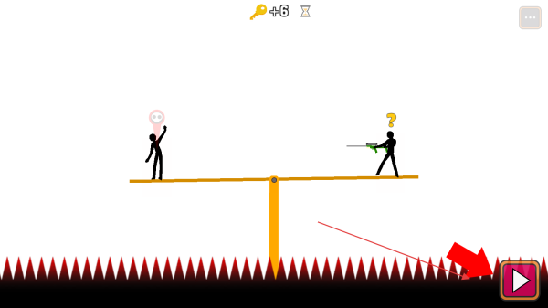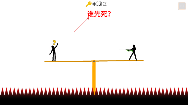 1、观察场景,分析跷跷板上两人及尖刺陷阱,思考谁先死的问题。