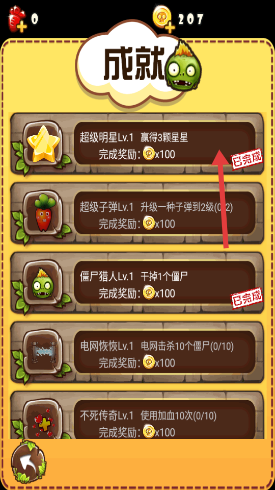 1、多维度成就体系:涵盖战斗、收集、成长等多类成就,既有“通关特定关卡”的基础成就,也有“用指定植物连胜”的进阶成就,满足不同玩家的挑战需求。