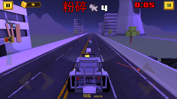 1、进入游戏,通过屏幕下方左右箭头虚拟按键操控车辆移动,留意屏幕上方的倒计时。