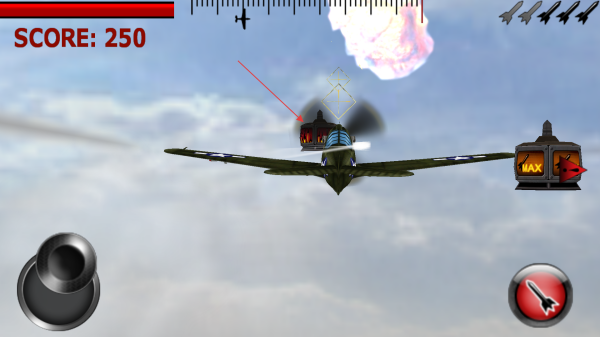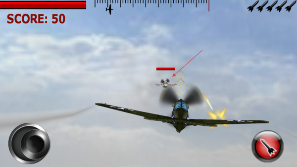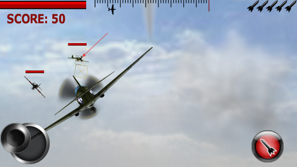 1、操控飞机,瞄准敌机,点击右侧导弹按钮发射,击落敌机得分数,注意躲避攻击。