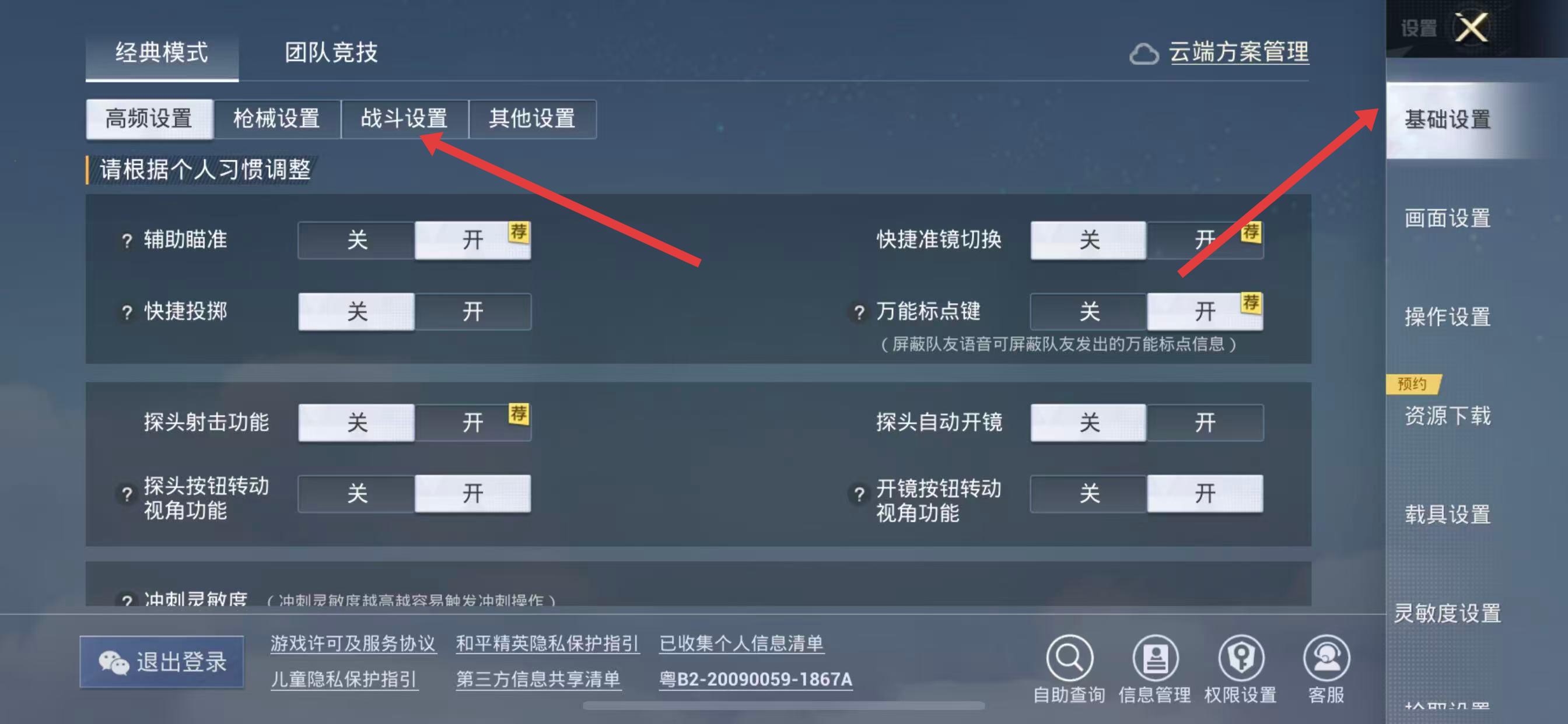 3、在设置界面右侧,点击选择基础设置,然后在下方找到经典模式设置板块。