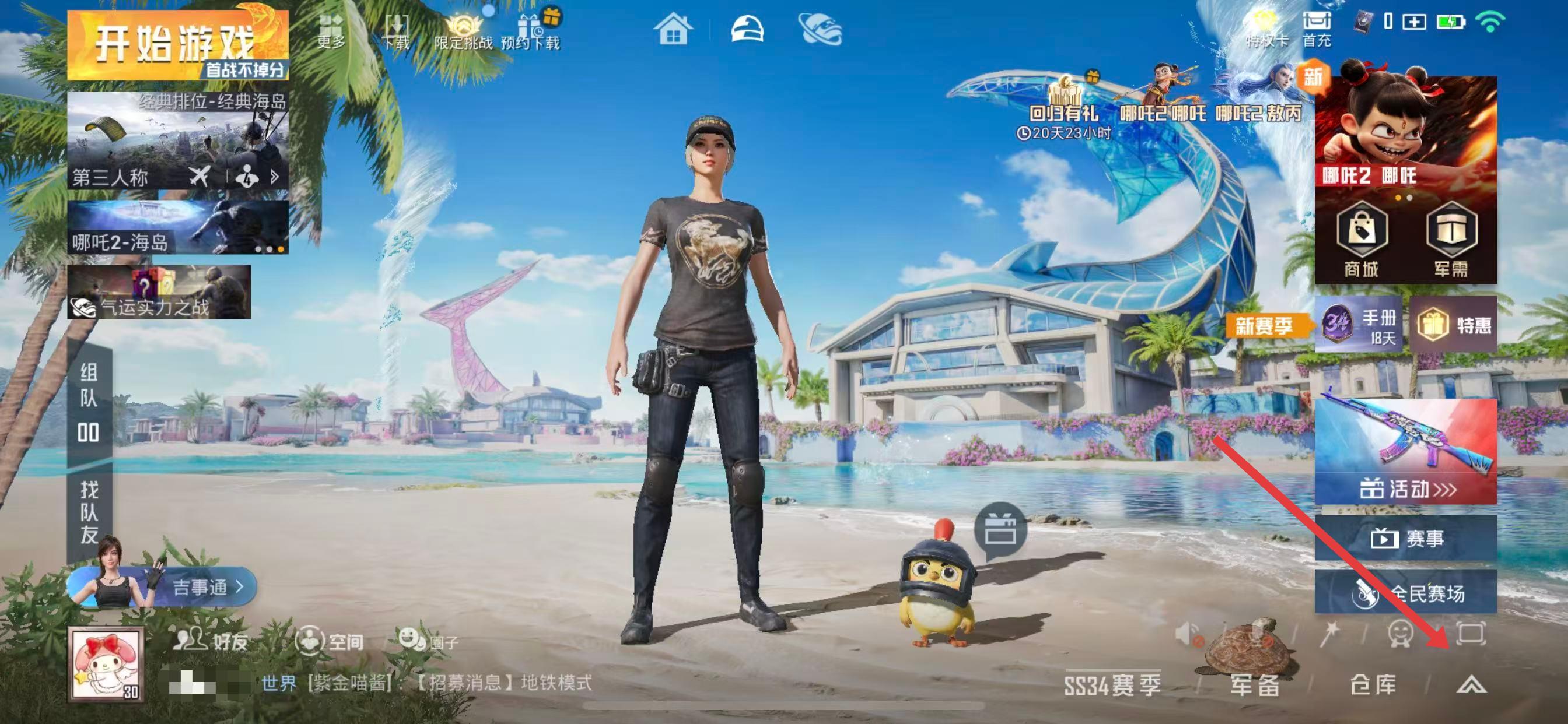 1、进入游戏主界面,点击右下角由两个三角形组成的更多按钮。