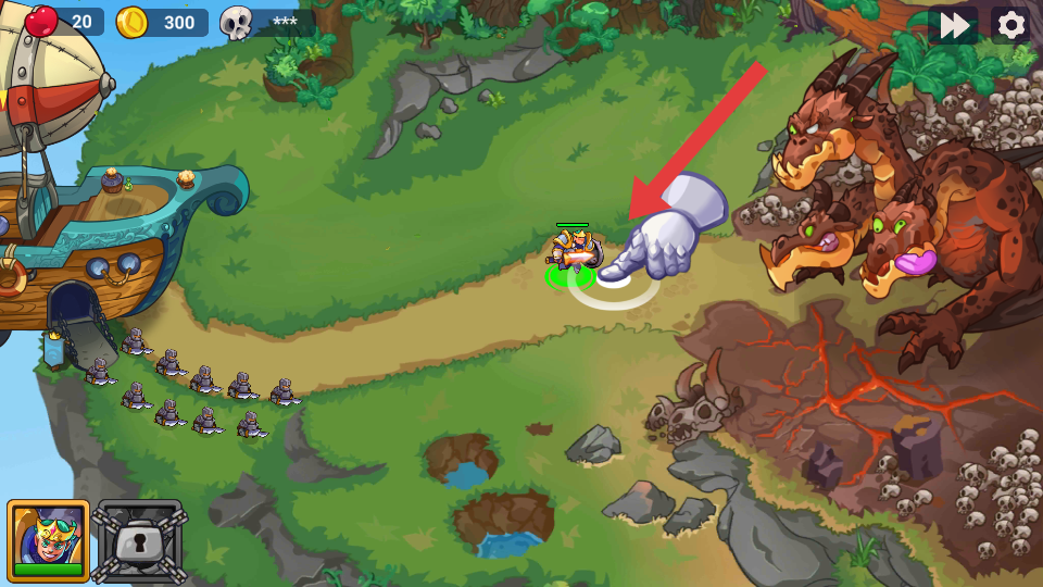 1、跟随指引点击英雄,拖动至指定区域完成初始部署,这是开启关卡防御的基础操作,准确放置英雄才能搭建好初始防线。