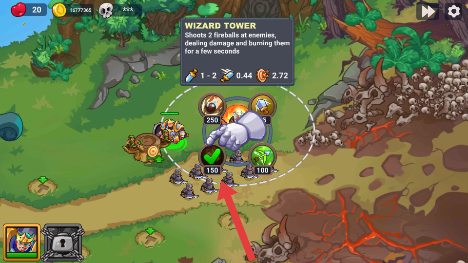3、按指引点击升级或激活技能,借助其发射火球、灼烧敌人的效果强化防御,优先针对高威胁怪物输出,确保顺利推进关卡。