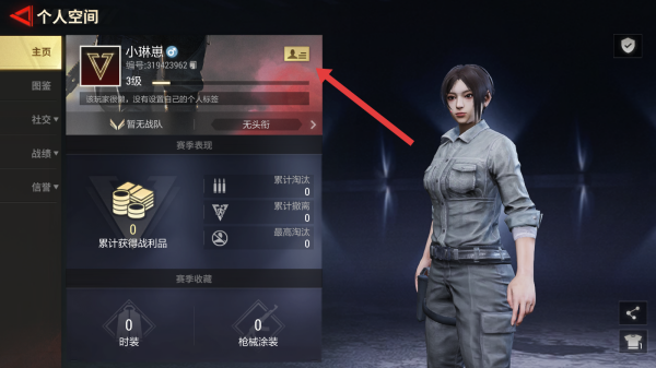 1、进入超凡先锋游戏主界面,点击左上角的游戏头像,进入个人空间页面。