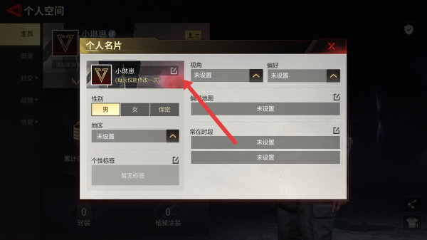 3、在名片界面里找到游戏昵称右侧的编辑标识,点击后即可修改名字,每日仅能修改一次名字,且需要改名卡,确认修改内容后点击确定即可完成改名操作。