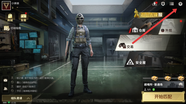 1、打开超凡先锋游戏,进入游戏主界面,点击右上角的设置图标,进入设置页面。