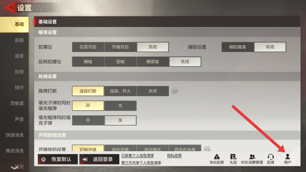 2、在设置页面底部,找到并点击用户选项,进入用户中心界面。