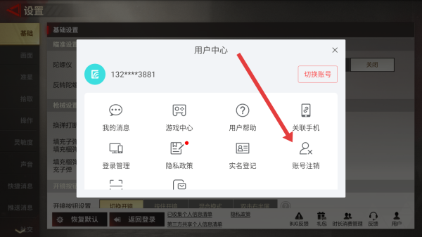 3、在用户中心界面中,点击账号注销选项,然后按照游戏系统给出的提示和要求,完成身份验证等相关操作,注销后账号数据无法恢复。