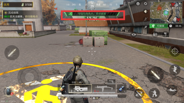 3、留意游戏界面左上角的撤离倒计时,在倒计时结束前,提前规划路线前往可撤离点,到达撤离点后,停留一段时间完成撤离,成功带出的物资就能归为己用或拿去变卖。
