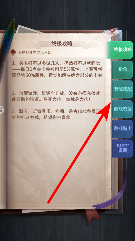 3、遇到卡关或想优化玩法时,打开终极攻略等界面,查看关卡削弱机制资源获取玩法建议等内容,借助攻略调整策略,攻克难关,提升游玩效率。