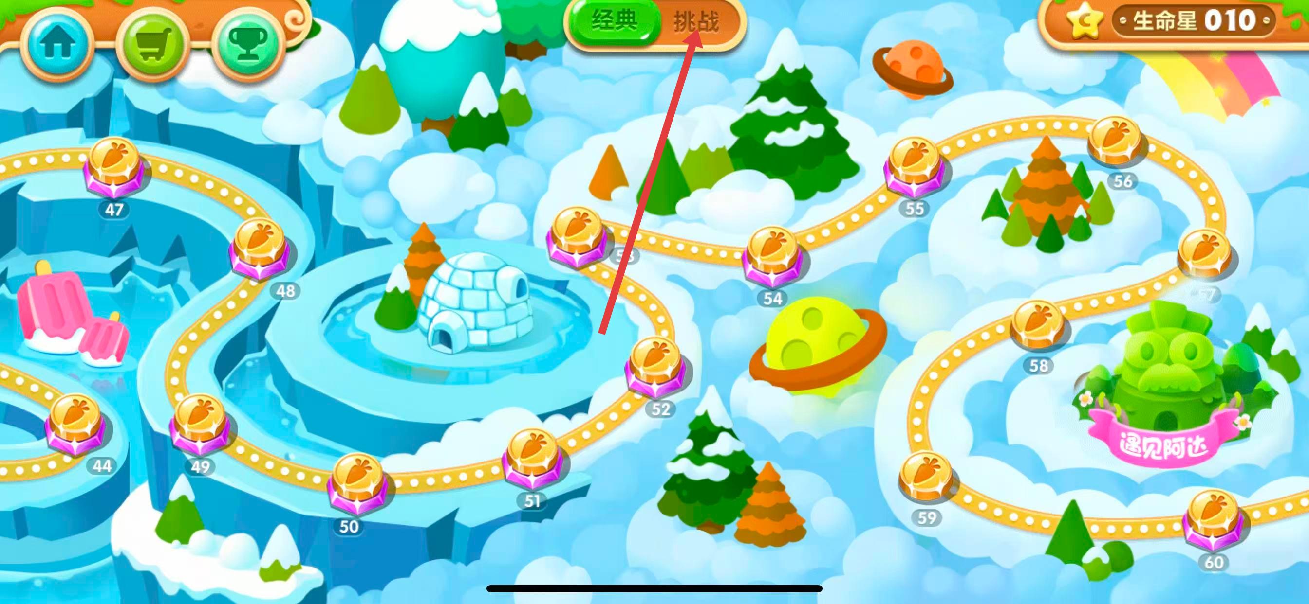 2、点击顶部「挑战」标签,切换到挑战模式地图。
