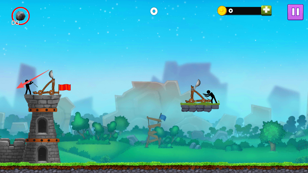 火柴人投石机是一款以火柴人为核心题材的策略塔防游戏,玩家将核心操控投石车展开攻防对战,通过点击屏幕拉动投石车调整张力,释放炮弹精准击毁敌方防线设施,同时需兼顾自身布防抵御敌方反击,击败敌人可获取金币,用于升级投石车本身、解锁炸弹等特殊炮弹及护盾、铠甲等防御装备,玩法兼具策略与爽感。
