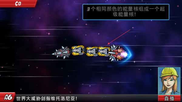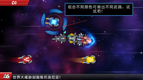 2、依据提示,尝试组合不同颜色能量核来打造多样武器,应对太空中出现的敌人。