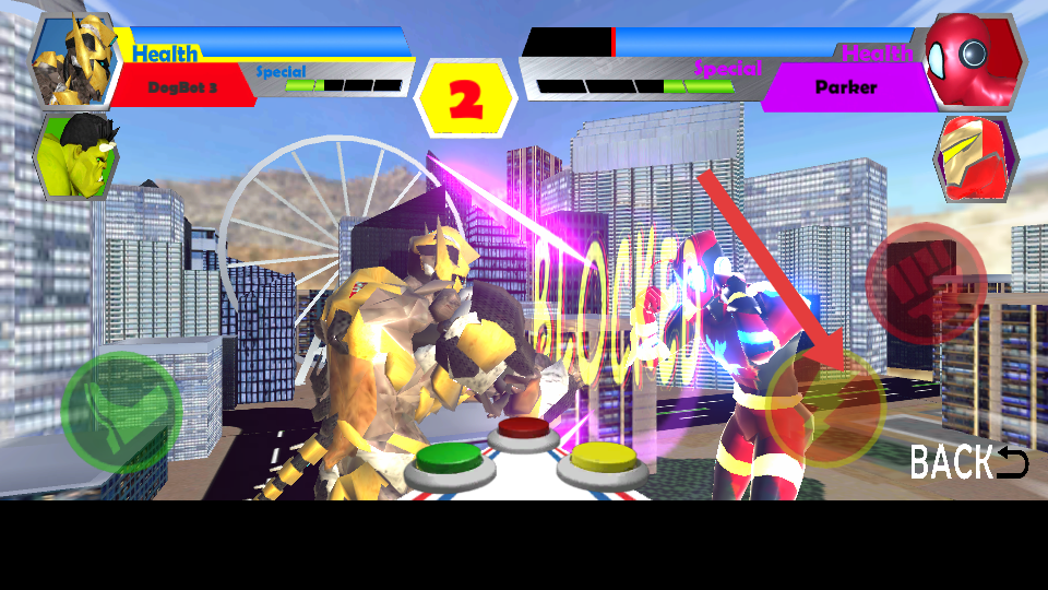 3、通过点击下方按键释放攻击、格挡等动作,同时利用特殊技能条释放特殊技能,限制内争夺对战优势。
