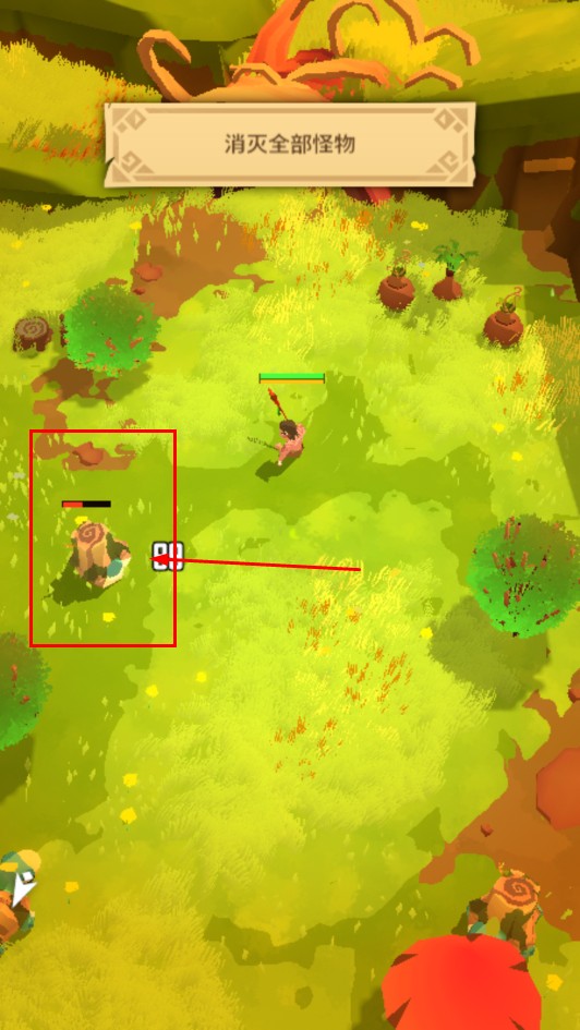 3、操作角色,消灭场景出现的全部怪物,怪物上方显示血量条。
