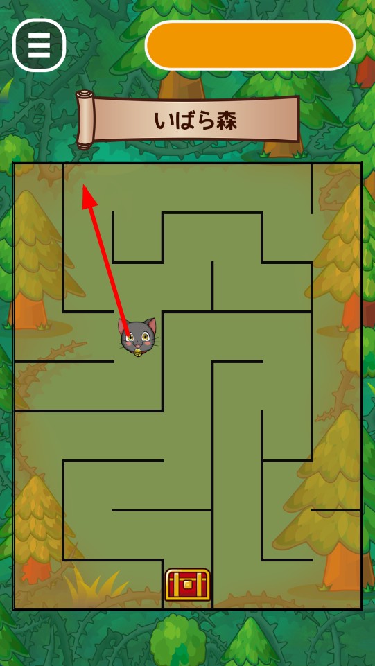 2、在“いばら森”迷宫场景,操控小猫在迷宫里移动,寻找正确路径。